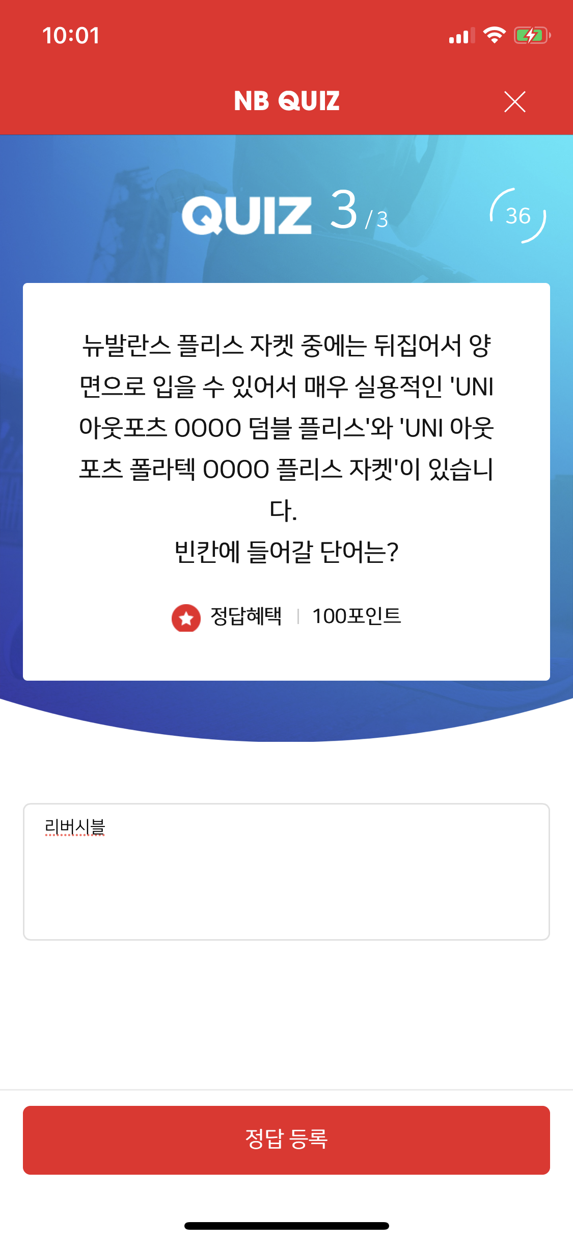 Q. 뉴발란스 플리스 자켓 중에는 뒤집어서 양면으로 입을 수 있어서 매우 실용적인 'UNI 아웃포츠 OOOO 덤블 플리스'와 'UNI 아웃포츠 폴라텍 OOOO 플리스 자켓'이 있습니다. 빈칸에 들어갈 단어는?