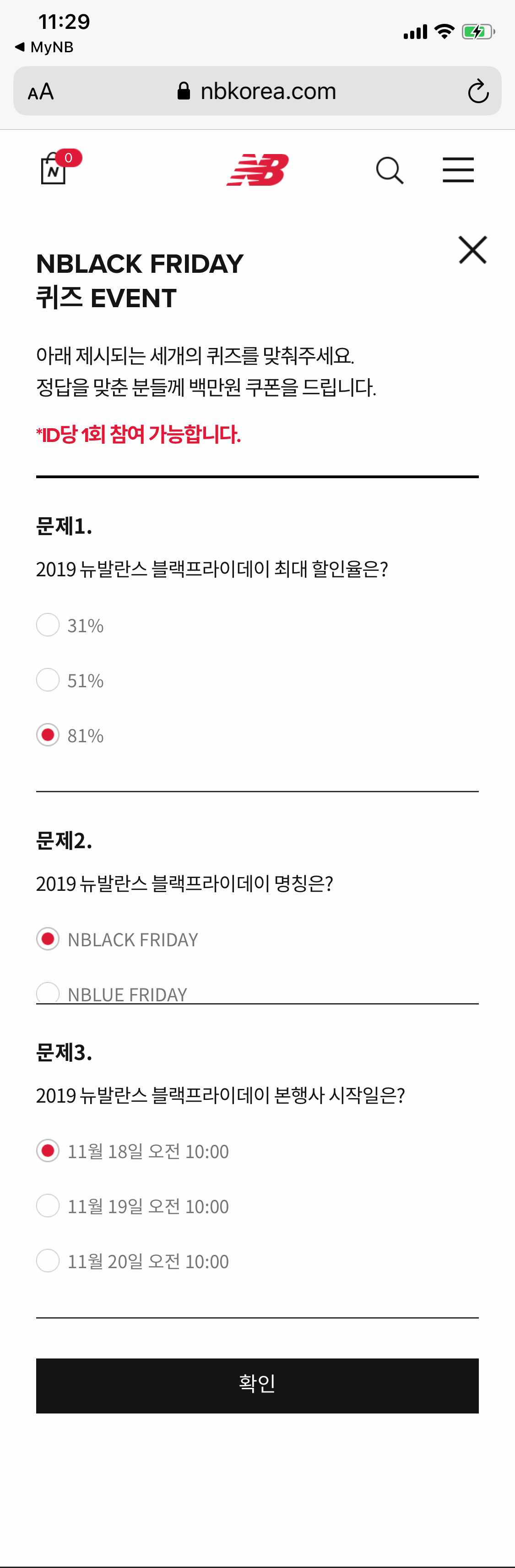 뉴발란스 퀴즈 총 3개