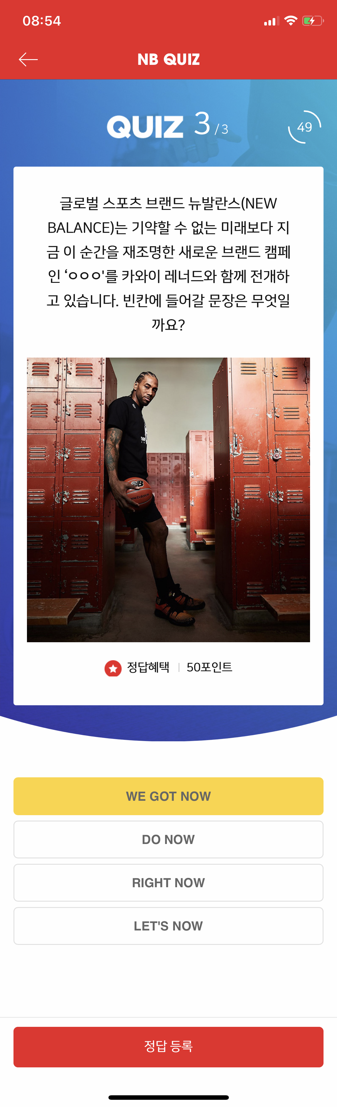 글로벌 스포츠 브랜드 뉴발란스(NEW BALANCE)는 기약할 수 없는 미래보다 지금 이 순간을 재조명한 새로운 브랜드 캠페인 'OOO'를 카와이 레너드와 함께 전개하고 있습니다. 빈칸에 들어갈 문장은 무엇일까요?