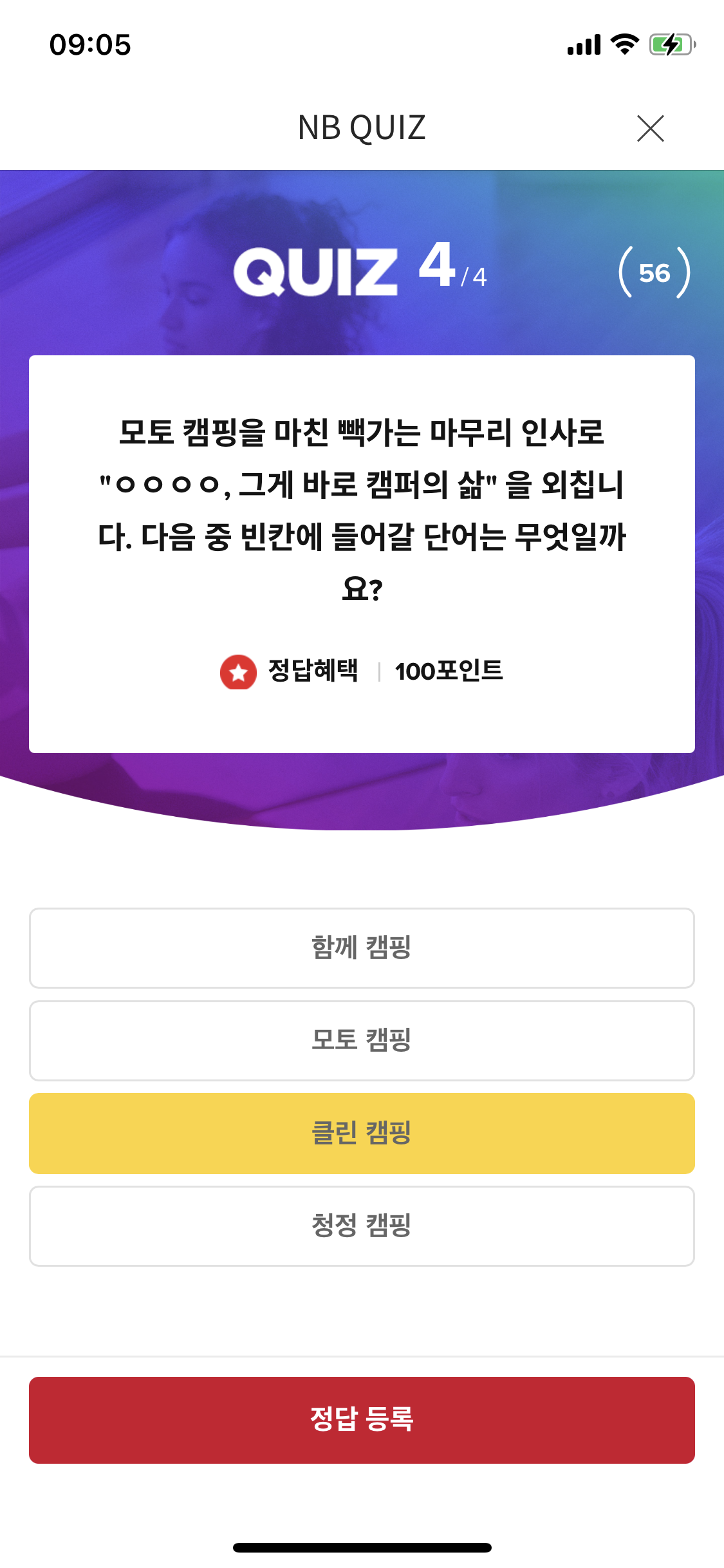 모토 캠핑을 마친 빽가는 마무리 인사로 "O O O O, 그게 바로 캠퍼의 삶"을 외칩니다. 다음 중 빈칸에 들어갈 단어는 무엇일까요?